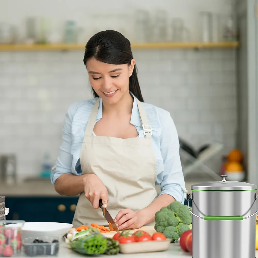 Composting at home is clean, easy, and odor-free with the iTouchless space-saving countertop compost bin with an AbsorbX odor filter. Compact size fits nicely onto kitchen countertops.
