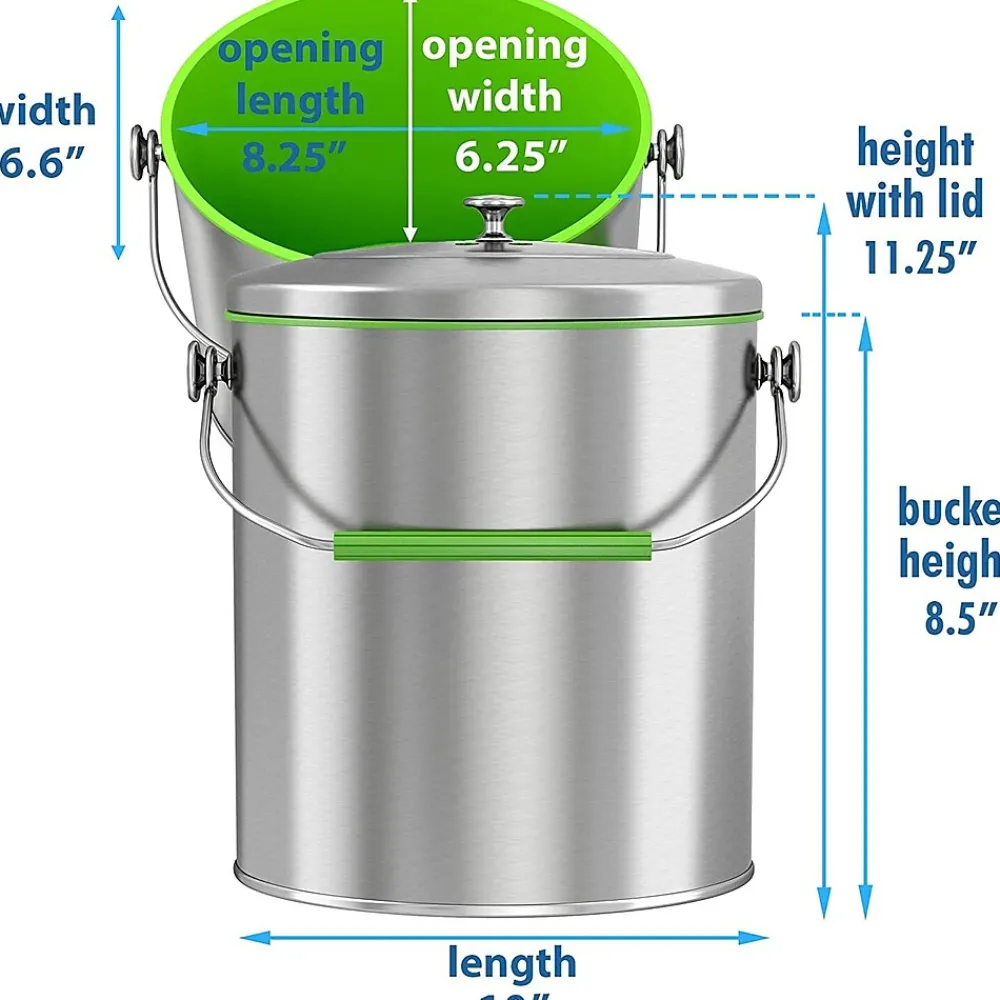 - Attractive stainless steel is fingerprint-proof, and green plastic lining is easy to wash