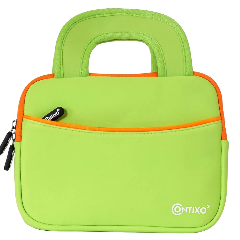 Splash into a world of protection with our Contixo sleeve in lively Purple, pink, green, and blue hues. Shield your tablet with a burst of color that brings fun to functionality. Say goodbye to device distress! Crafted with care, this shock-proof and splash-proof sleeve stands guard, ensuring your tablet emerges unscathed from life’s little adventures. Embrace the perfect balance of style and safety. The premium polyester exterior puts up a stalwart defense against dust, debris, and scratches, letting your tablet shine like new. Double the pockets, double the delight! The ingenious dual-pocket design cradles your tablet in the main pocket while the secondary pocket hosts a parade of peripherals – headphones, USB cables, pens, and even your trusty mobile phone. Seal the deal with confidence. The hook & loop and double zipper closures unite to create an impenetrable fortress around your tablet. No more worrying about your device’s safety on the go! Light as a feather, sturdy as a rock. This sleeve gracefully dances through your daily routine, proving that dependable protection doesn’t need to weigh you down. Slide your tablet into a world of precise fit. With internal dimensions of 295x195mm (11.6″ x 7.7″), make sure your tablet’s home is measured before the magic happens.Compatibility: Contixo K101/K102, Fire HD 10 kids Edition 2017, Fire HD 10. 1 inch tablet (2019/2017/2015), Fire HD 8 Kids Edition, iPad Pro 11″ 2018, iPad 10.2 2019, iPad Air 10.5, Galaxy Tab S4 10. 5″, Surface Go and other 10 inch laptops/ tablets. (NOTE: Fire HD 10 kids Edition 2019 Tablet can only be put into the sleeve without kid-proof case!)Specs: Interior Dimensions: 295 x 195mm (11.6″ x 7.7″) Material: Soft Neoprene with Inner Polyester Lining