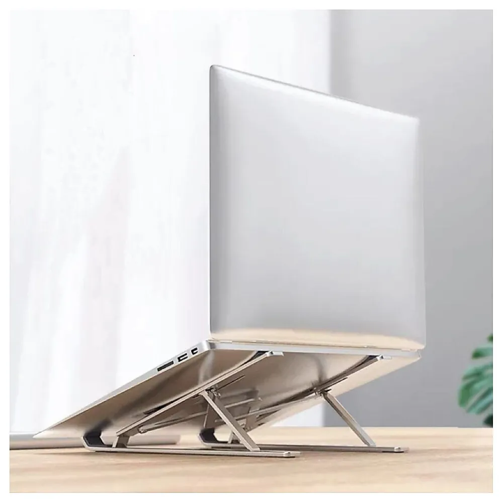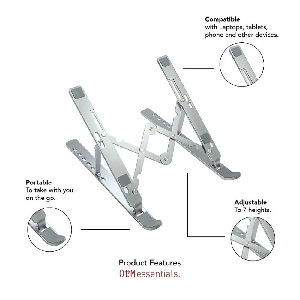 The OTM Essentials adjustable riser laptop stand helps raise your laptop to a perfect working position. Compatible with laptops, tablets, phones, and other devices.