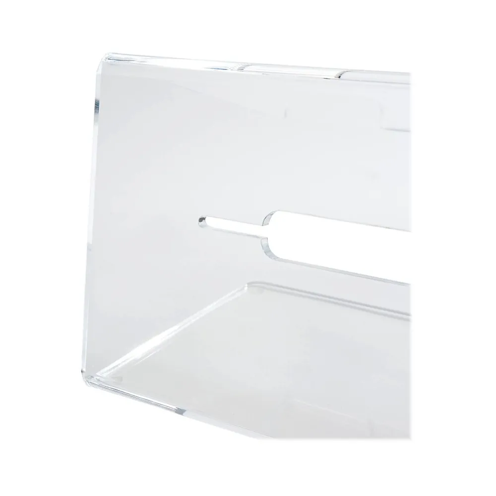 Create the perfect home base for your laptop with the Russell+Hazel acrylic laptop stand. Features a durable construction with polished edges to last for years to come. An integrated cord manager slot allows for a neat and tidy solution for laptop accessories on your desktop. The angled stand accommodates laptops up to 16″ with two front lips to keep your device in place. Seamlessly coordinates with the brand’s entire line of acrylic organization tools for a complete desktop system.