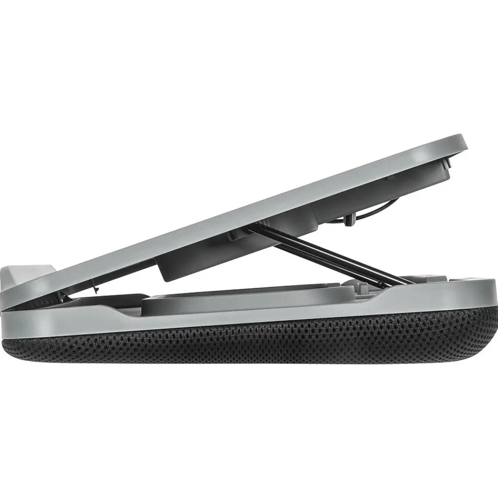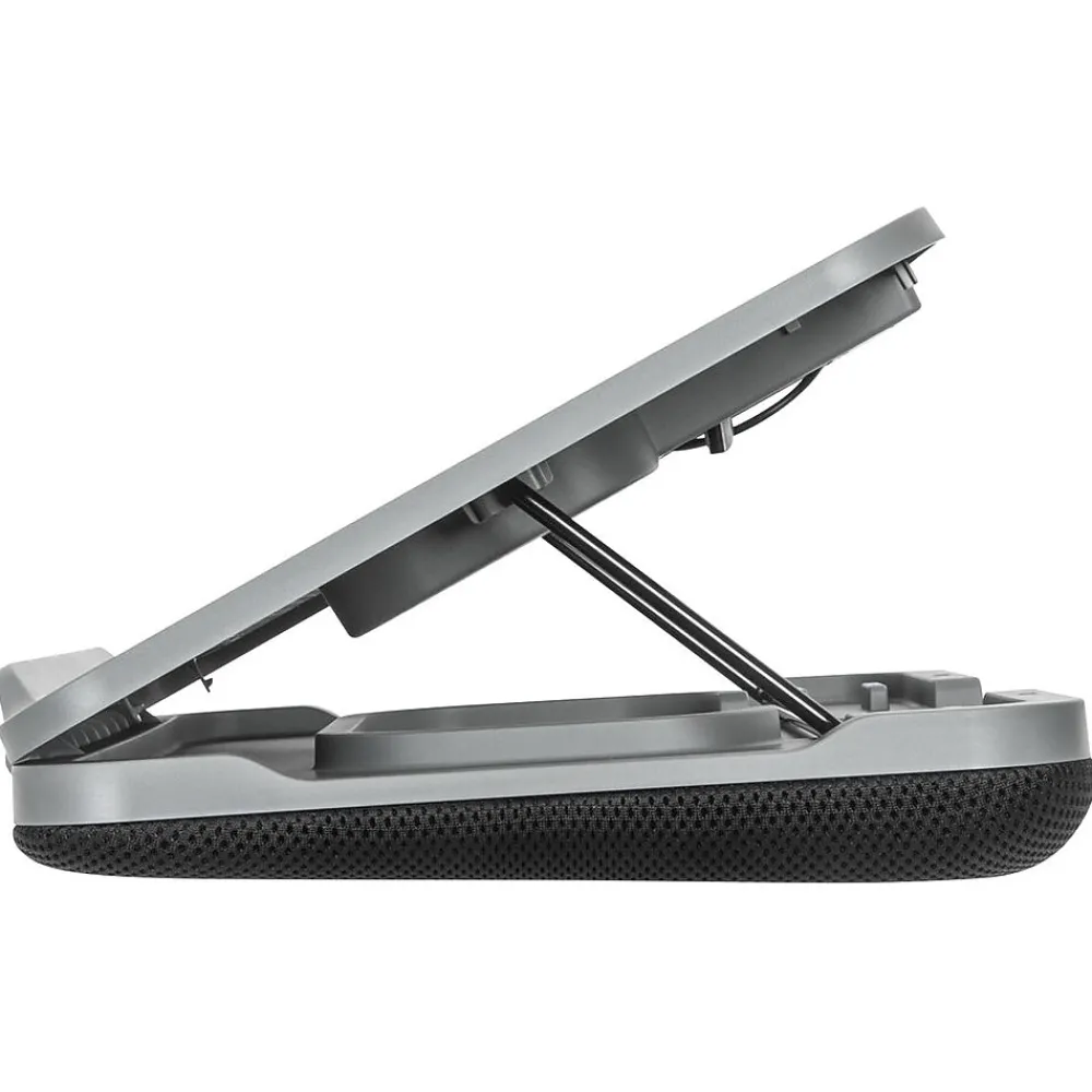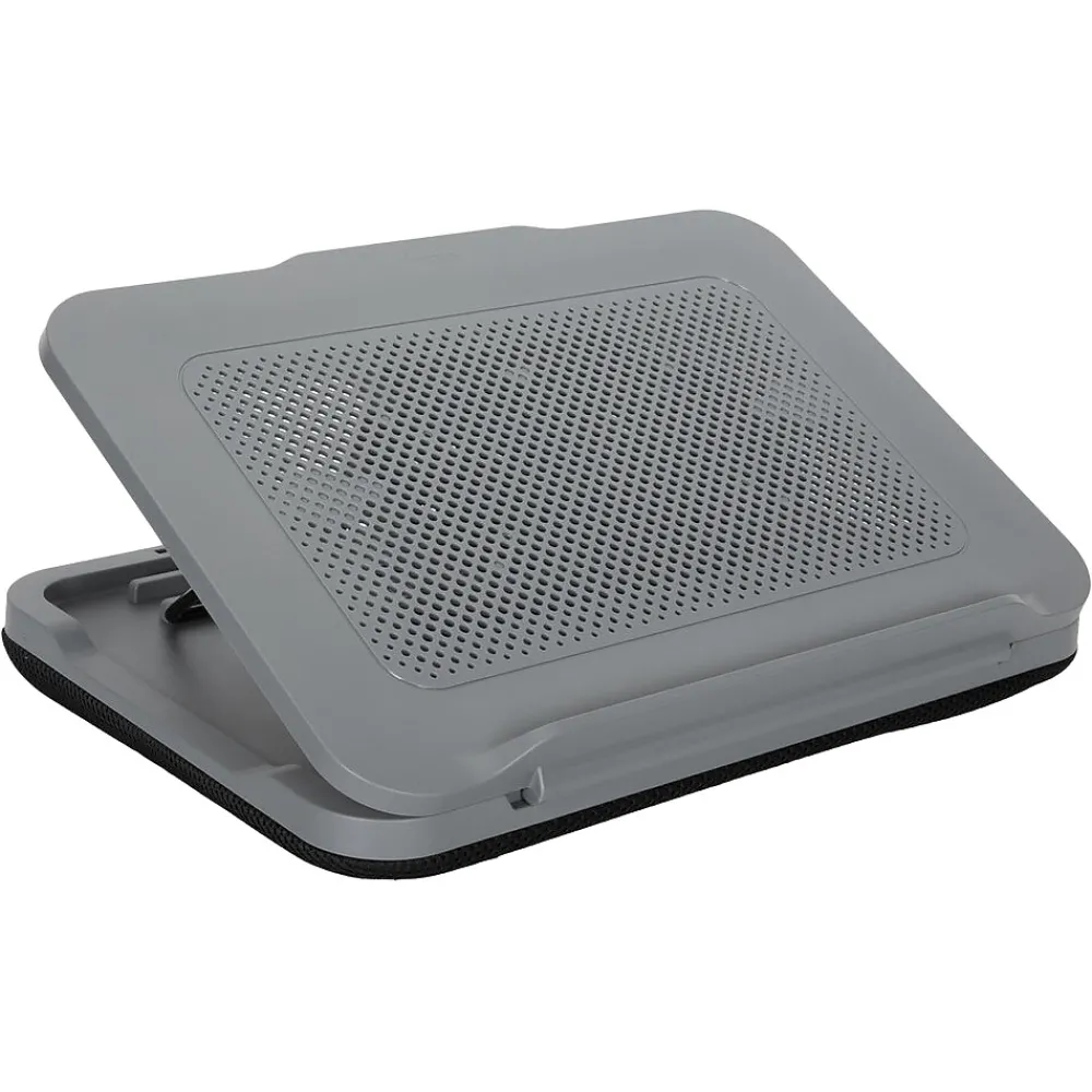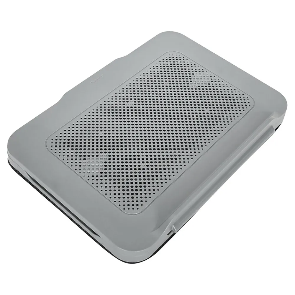 Maximize comfort and coolness with the Targus 18″ dual-fan Chill Mat with adjustable stand. With its continuous cooling performance, this laptop cooling mat is powered by your laptop. Simply plug the Chill Mat into a USB Type-A port with the included tuckaway cable. Within seconds, two built-in 1900 rpm cooling fans begin to disperse excess heat. This not only helps keep your laptop from overheating, but also helps keep you cool. Don’t succumb to the pains usually caused by bad working posture or improper ergonomics. Rely on this cooling pad for laptops that’s built with comfort in mind. Enjoy the flexibility of this laptop cooling pad’s three adjustable-height positions. This Chill Mat places your laptop at a comfortable viewing angle to help reduce glare and neck and eye fatigue.