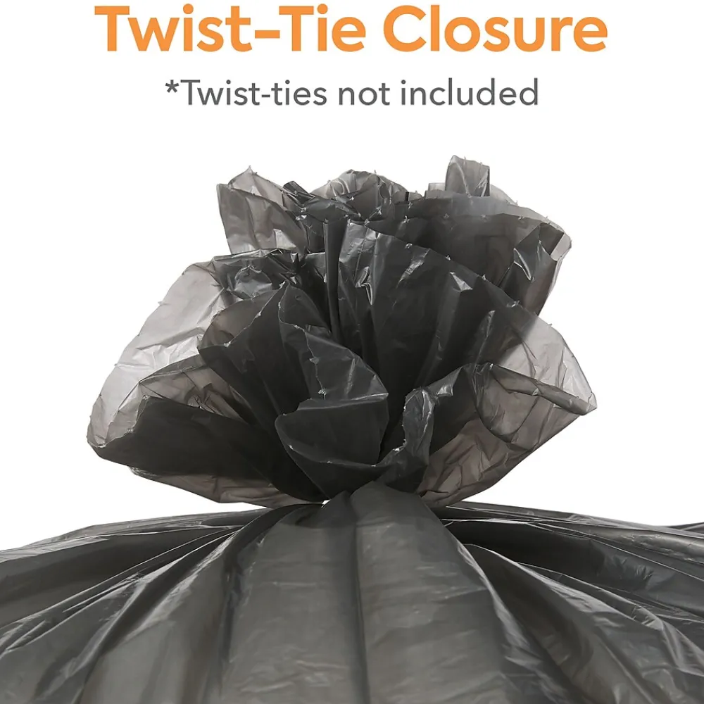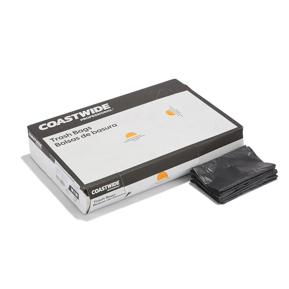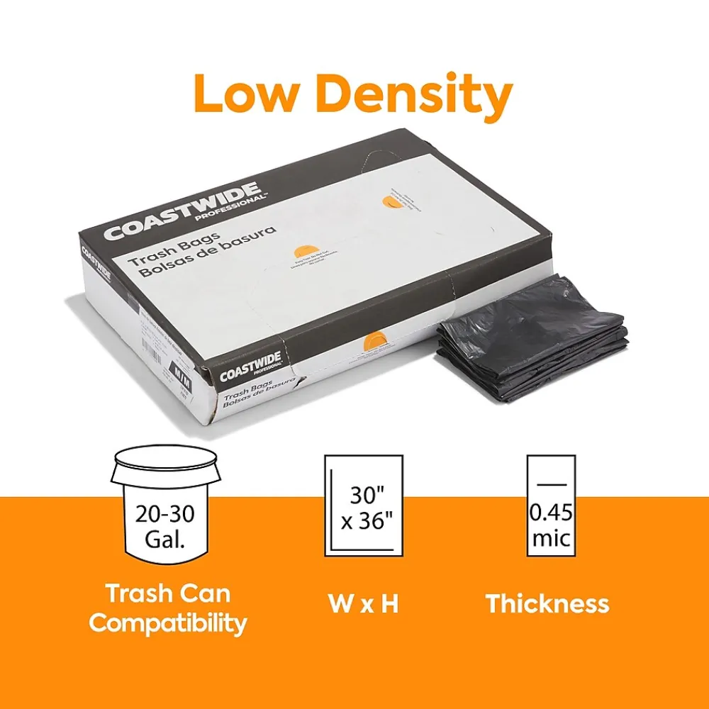 Maintain a clean, mess-free office with these unscented trash bags. The black color keeps the contents out of plain sight for discretion, and the low-density polyethylene prevents stretching to avoid leaks. These Coastwide Professional™ 0.45-mil trash bags hold 20 to 30 gallons of garbage, ensuring safe use in breakrooms, and the 250-count carton lets you handle the demands of a busy office.