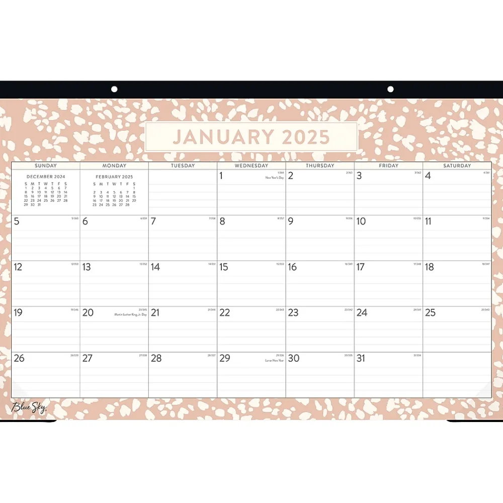 Made for 2025, the Blue Sky Natalya desk pad calendar provides a visual overview of your schedule. This 12-month calendar gives you ample writing space to track deadlines, birthdays, and events. Enjoy high-quality white paper, large text for easy reading, and reference calendars to help you plan.