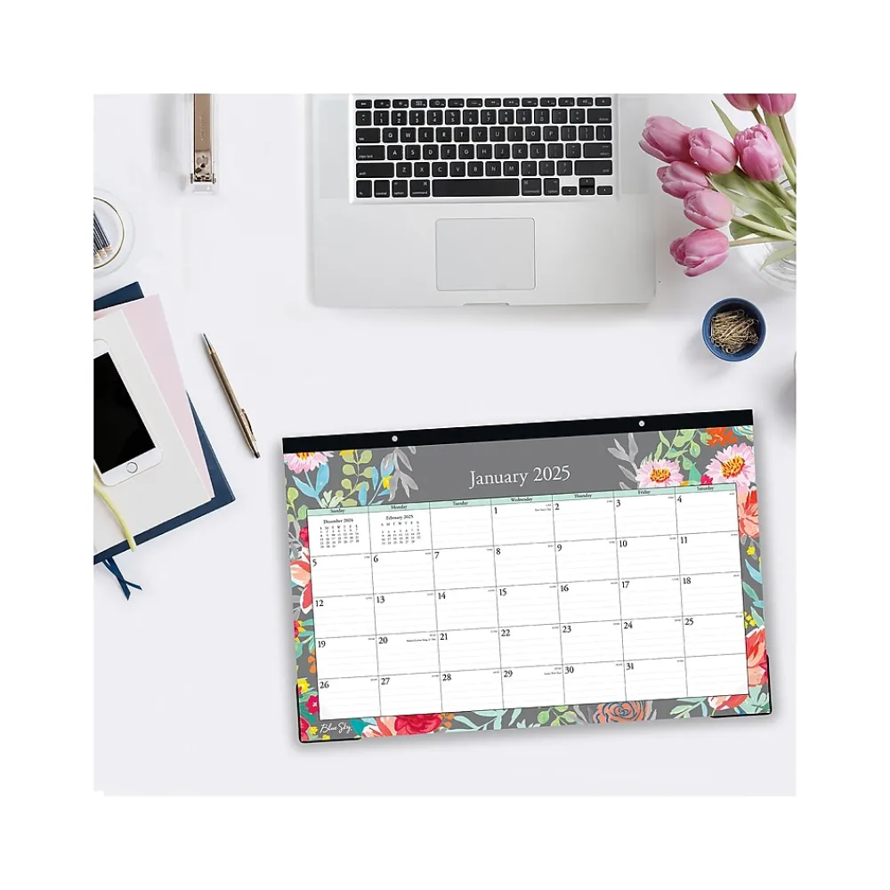 Made for 2025, the Blue Sky Sophie desk pad calendar provides a visual overview of your schedule. This 12-month calendar gives you ample writing space to track deadlines, birthdays, and events. Enjoy high-quality white paper, large text for easy reading, and reference calendars to help you plan.