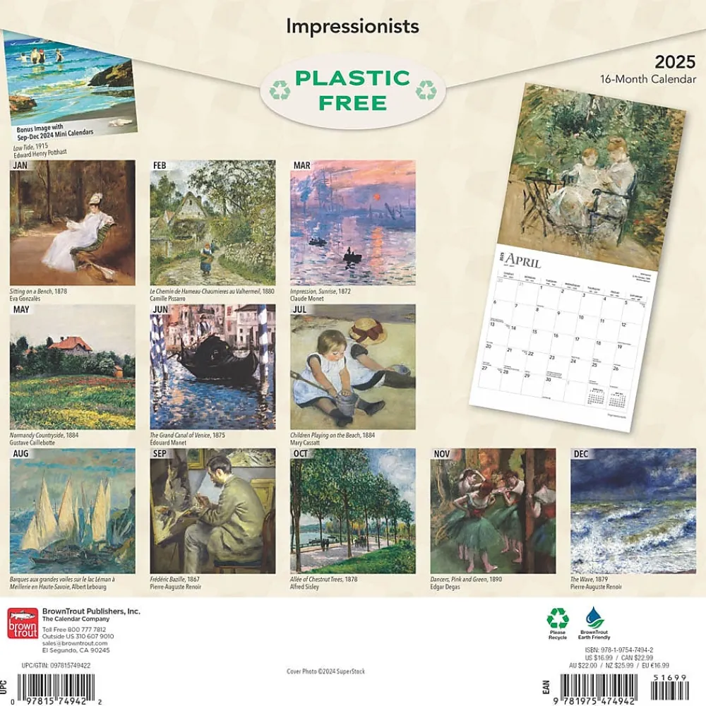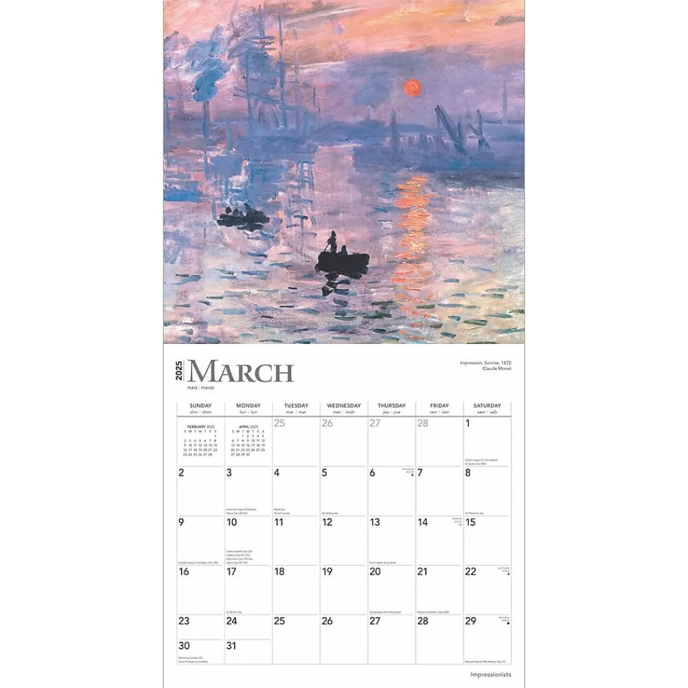 Considering the enormous popularity Impressionist art enjoys today, and considering the major influence it has had on numerous subsequent artistic movements, it is hard to imagine a time when it was looked upon with almost universal disdain. But it was indeed so when an early group of French Impressionists held their first independent show in 1874. Critics, appalled at the short, spontaneous brush strokes and bright colors, called the likes of Monet, Pissaro, Renoir, and Degas “lunatics.” But thankfully these masters pushed forward and stood firm behind their works. Those who love the Impressionists are sure to enjoy this striking calendar.