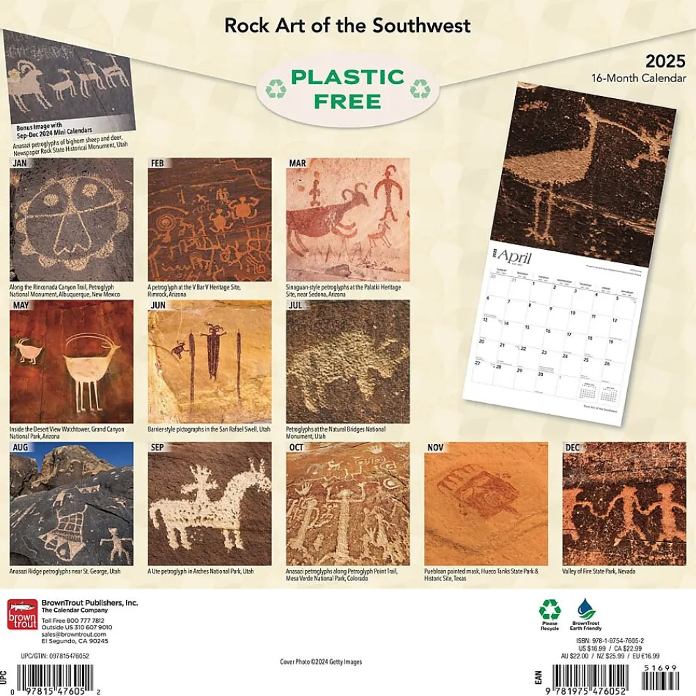 The landscape of the southwestern United States contains vast swaths of quiet, empty land. But it also contains silent stories, carved, etched, or painted on the stone of its caves and canyons. Take a step into the past with the pictographs and petroglyphs of Arizona, Colorado, Utah, and New Mexico in this unique calendar.