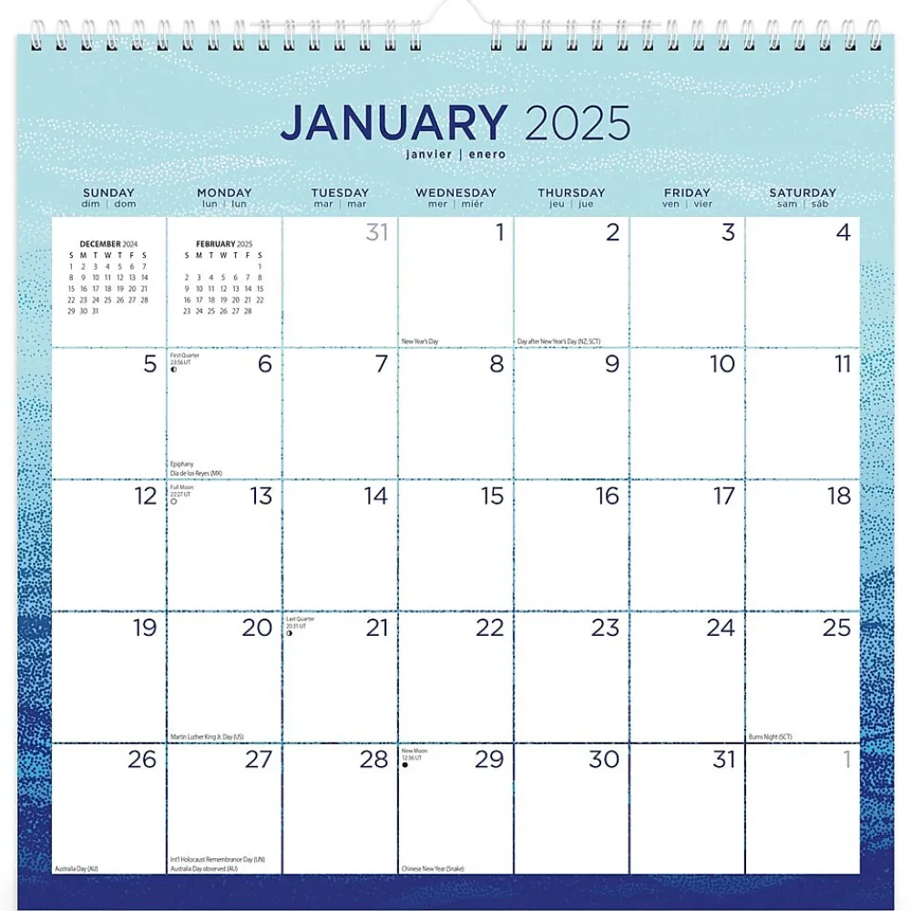 - Large, Roomy Day Blocks – All major holidays and moon phases listed, with plenty of room for writing notes and appointments