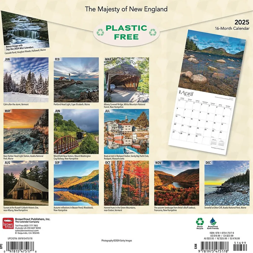 New England is known worldwide for its natural beauty—from rugged coastlines to tranquil lakes to the glorious colors of its fall foliage. With stunning scenic photography from Connecticut, Maine, Massachusetts, New Hampshire, Rhode Island, and Vermont, this beautiful calendar celebrates the natural majesty of New England.