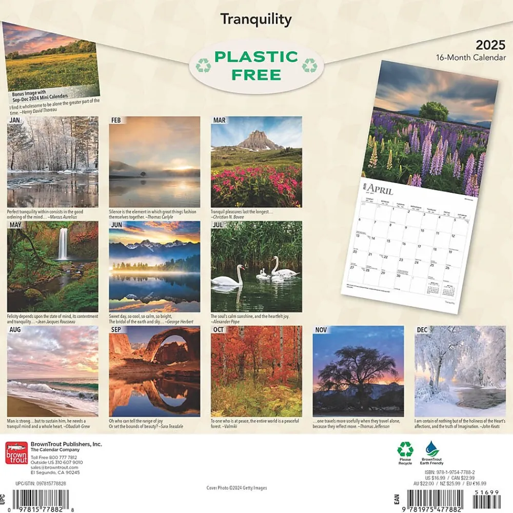 Our fast-paced world often makes it difficult to find moments of calm. With beautiful images, this Tranquility calendar offers a picturesque walk through near and distant locales where quiet moments of self-reflection are abundant.