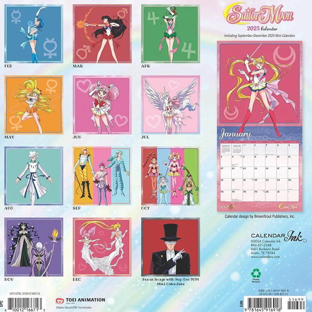 Fighting evil by moonlight, winning love by daylight—Sailor Moon has captured the hearts of anime fans around the world ever since her inception in 1991. From manga to television cartoons to live-action renditions, Sailor Moon and her fearless troupe of Sailor Scouts have remained dedicated to protecting Earth from the forces of the Negaverse, all the while discovering their true ethereal identities and navigating their way through adolescence. Celebrate Sailor Moon and the Sailor Scouts year round with this vibrant and colorful wall calendar.