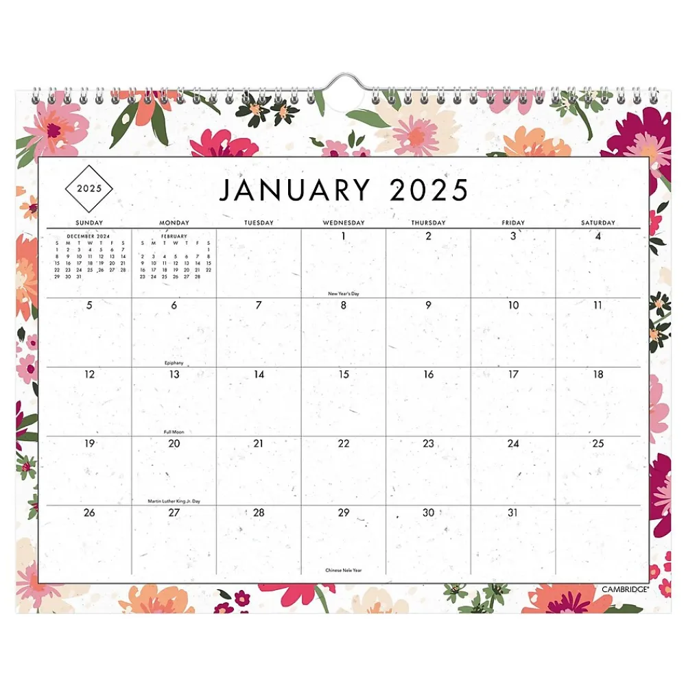 This year, choose a calendar that promotes personal organization and environmental sustainability. The Cambridge GreenPath monthly wall calendar is 100% recyclable and helps you stay on track throughout the year.