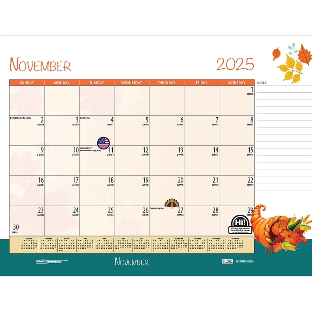 The colorful, enthusiastic Seasonal Holiday Depictions in this desk pad calendar by House of Doolittle highlight each month’s special holiday and season with bright, lively designs throughout the page.