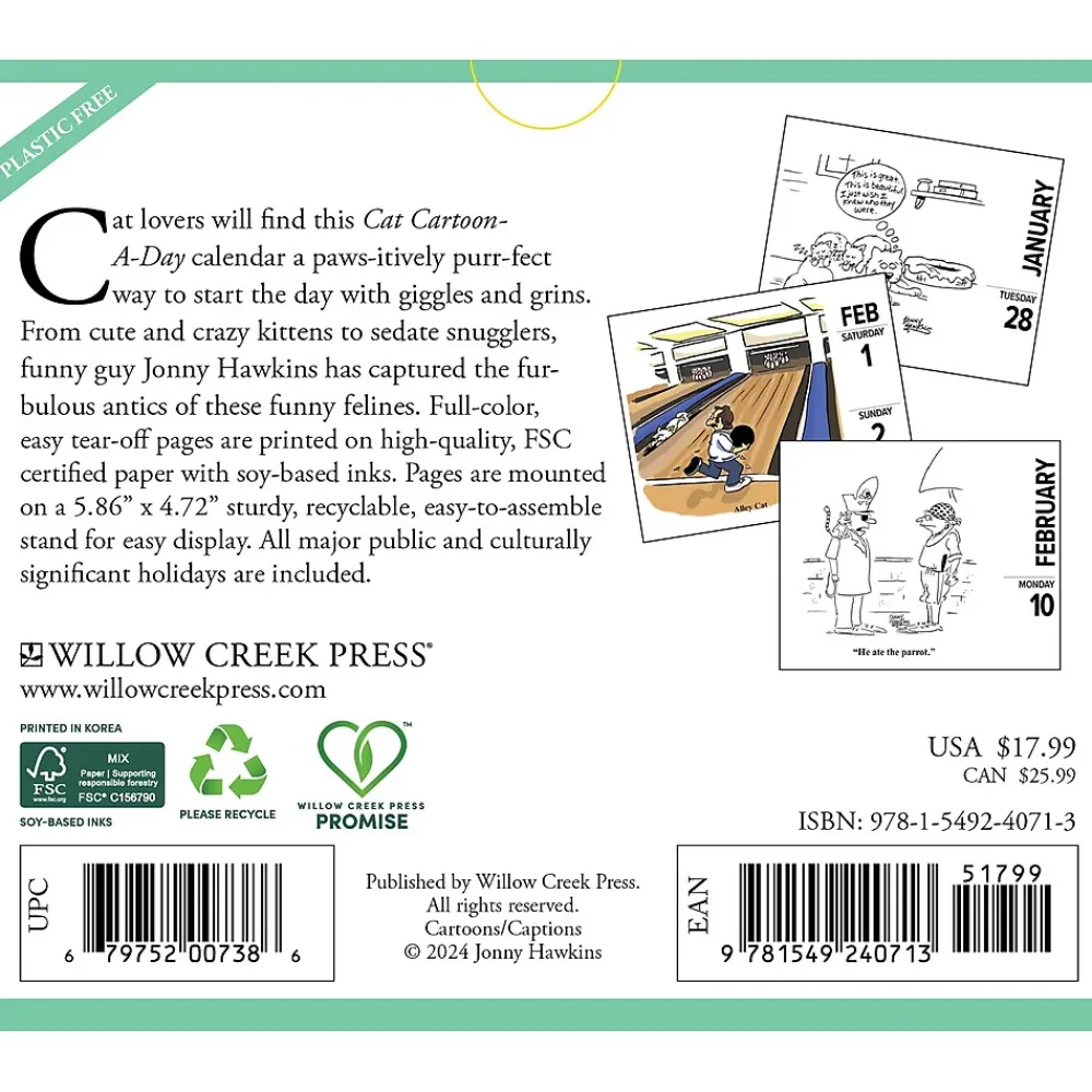 Add a little something special to each day with this cat cartoon 2025 daily desktop / box calendar. Flip the page each day for a new full-color image to inspire. Perfect for the home or office, this calendar is designed to make your year special.