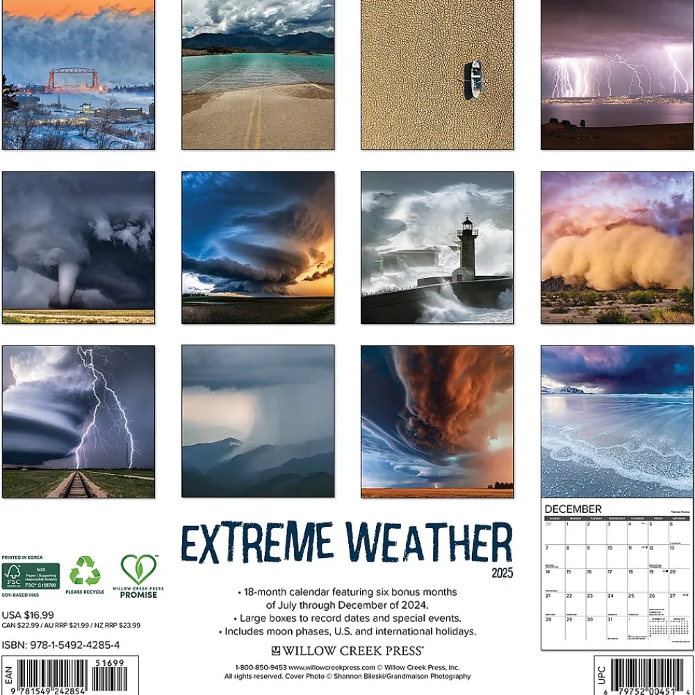2025 Calendars|Willow Creek 2025 Extreme Weather 12″ x 12″ Monthly Wall Calendar (42854)