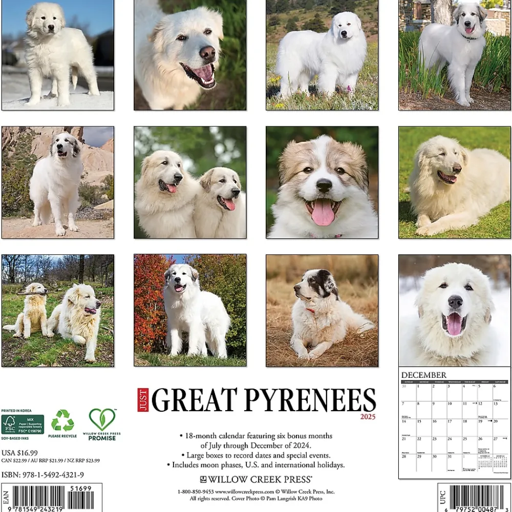2025 Calendars|Willow Creek 2025 Just Great Pyrenees 12" x 12" Monthly Wall Calendar (43219)