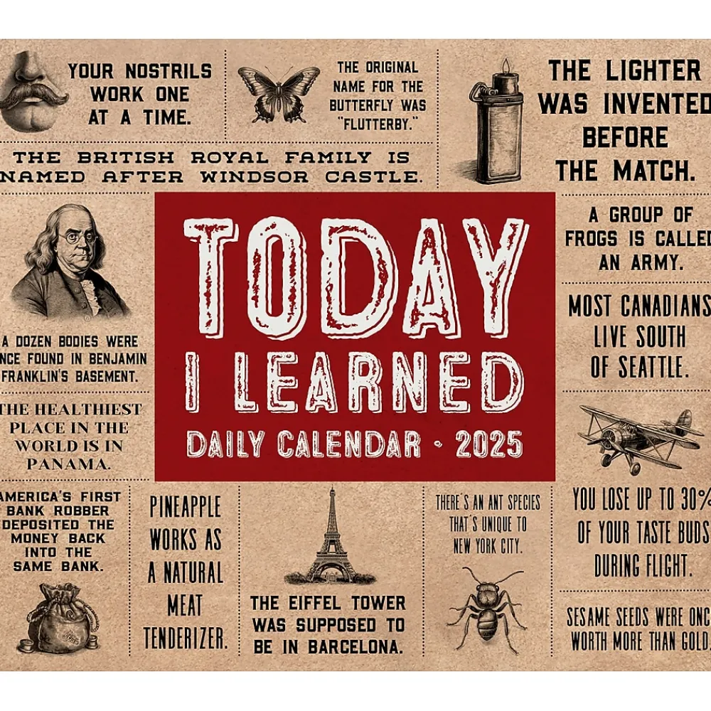 Add a little something special to each day with this Today I Learned – Trivia and Facts 2025 daily desktop / box calendar. Flip the page each day for a new full-color image to inspire. Perfect for the home or office, this calendar is designed to make your year special.