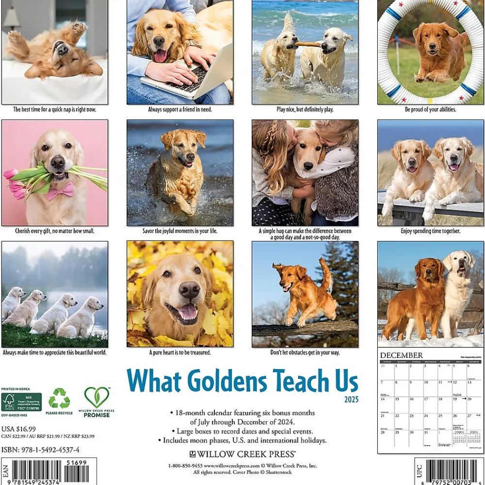 2025 Calendars|Willow Creek 2025 What Goldens Teach Us 12" x 12" Monthly Wall Calendar (45374)