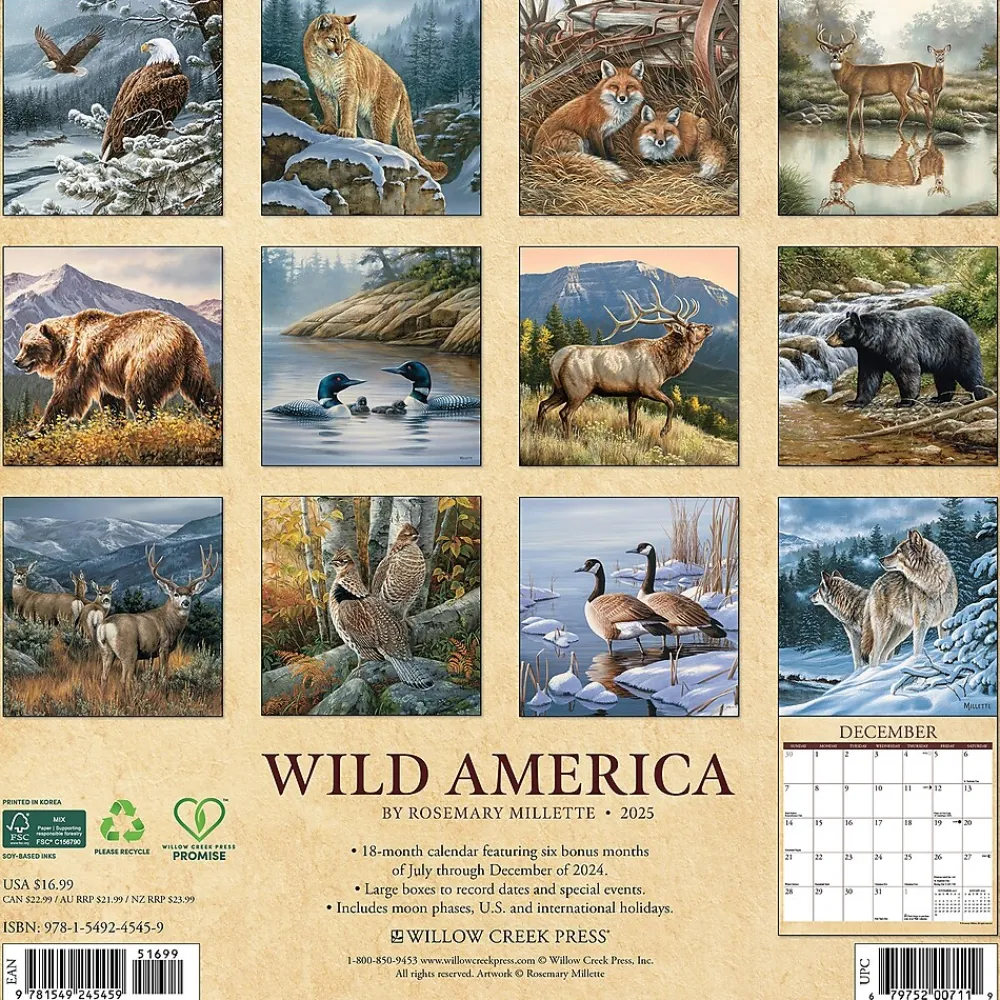 2025 Calendars|Willow Creek 2025 Wild America 12" x 12" Monthly Wall Calendar (45459)