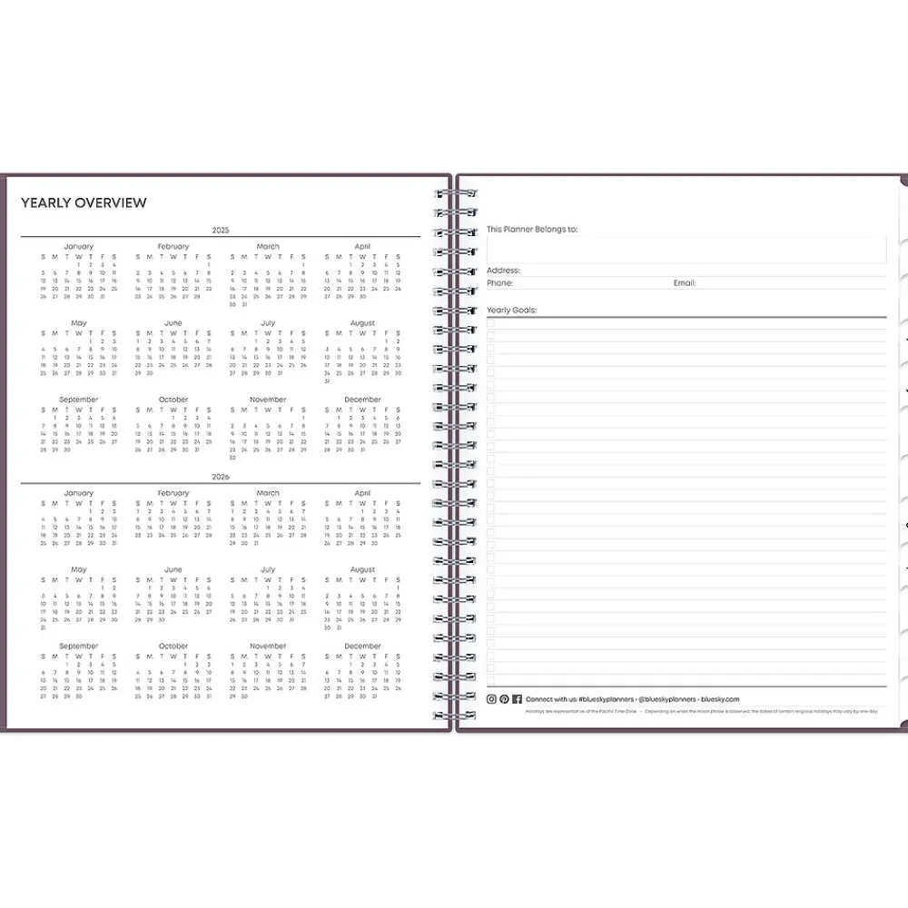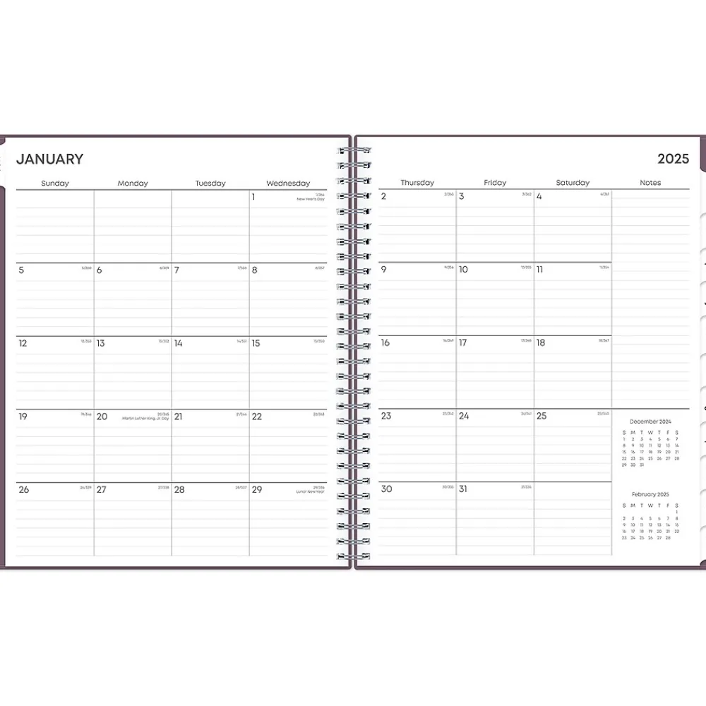 A simple planner with monthly calendars. Track events with this 2025 monthly planner from Blue Sky, featuring 12 tabbed monthly views and plenty of room for notes.