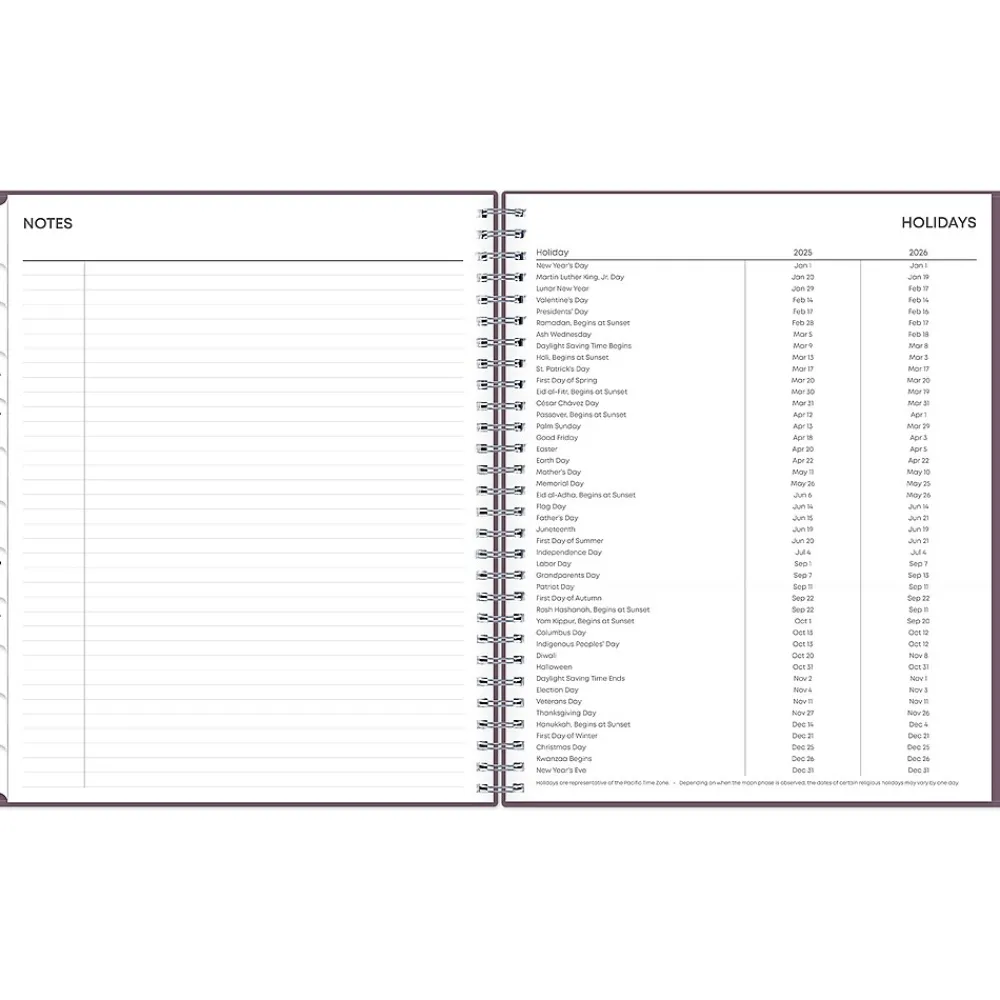 - Shows one one month per two pages, with space for notes and quick reference calendars