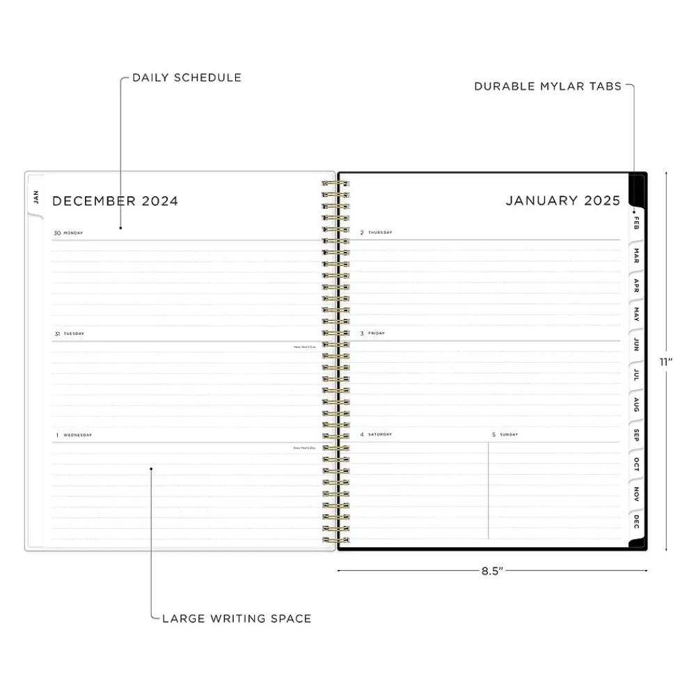 Organize tasks and time with the 2025 Blue Sky Ashley G Small Dots planner that includes a storage pocket. Use ruled weekly layouts, tabbed monthly views, and notes pages to manage your schedule and achieve your goals.