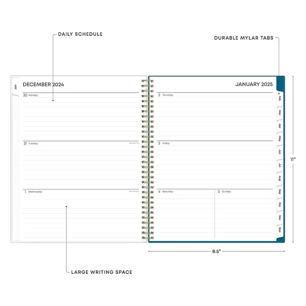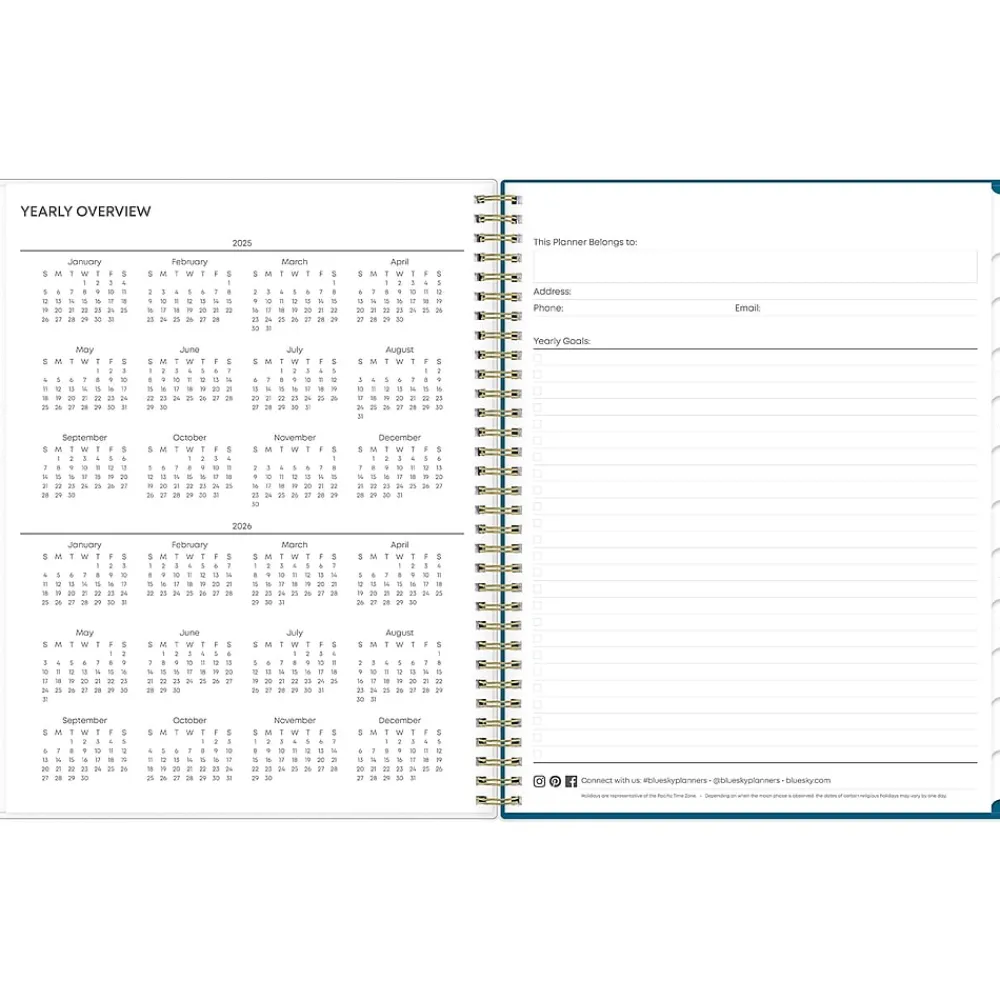 A simple planner for busy schedules. Organize tasks and time with the Bakah Blue weekly and monthly 2025 planner from Blue Sky that includes a storage pocket. Use weekly layouts, tabbed monthly views, and notes pages to effectively manage your schedule and achieve your goals.