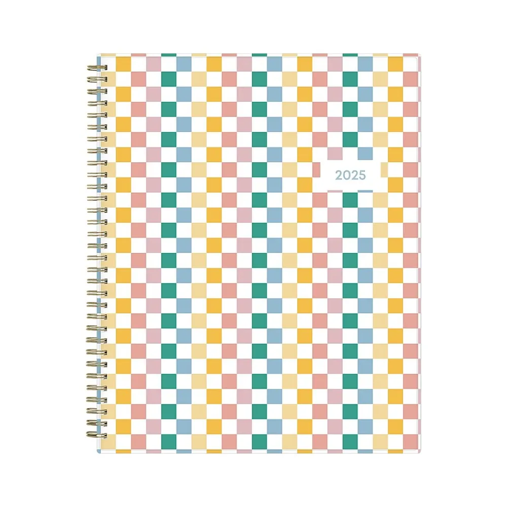 Organize tasks and time with the 2025 Blue Sky Checkerboard planner that includes a storage pocket. Use ruled weekly layouts, tabbed monthly views, and notes pages to manage your schedule and achieve your goals.