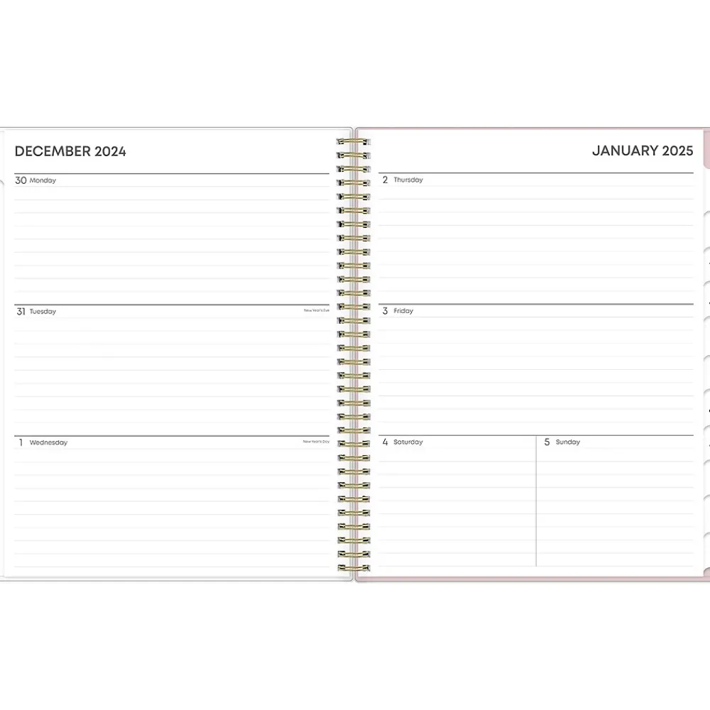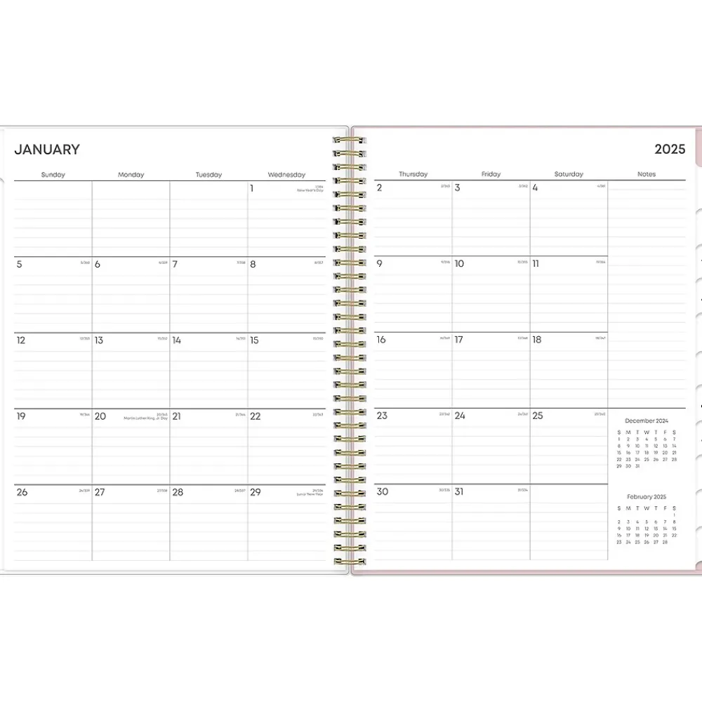 - Features two-page weekly and monthly spreads, with space for notes and quick reference calendars