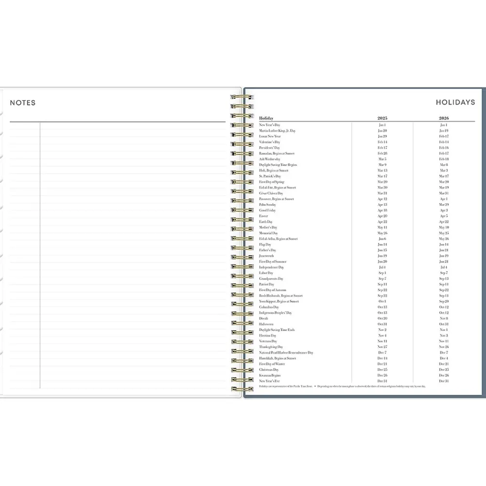 - Features two-page vertical appointment-style weekly and monthly spreads, with space for notes and quick reference calendars