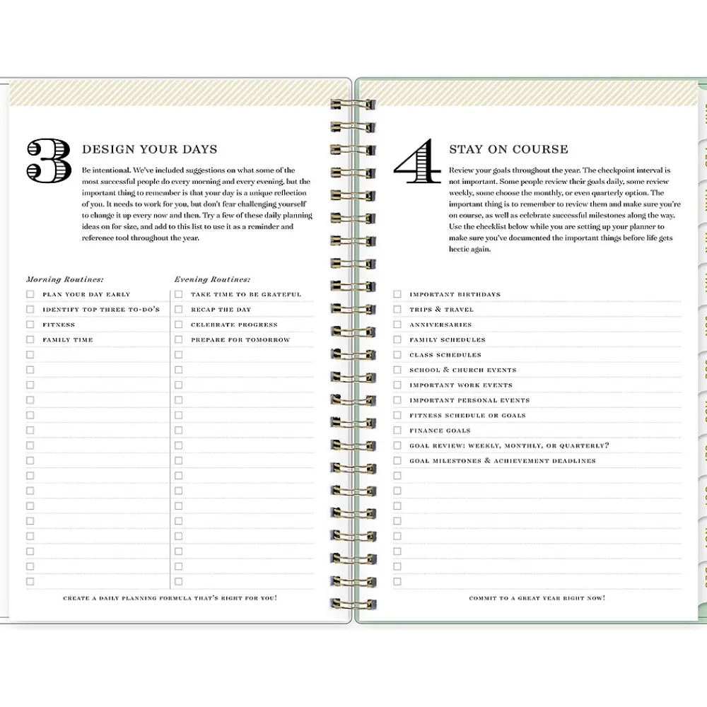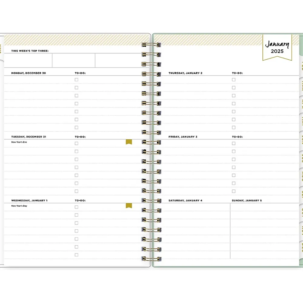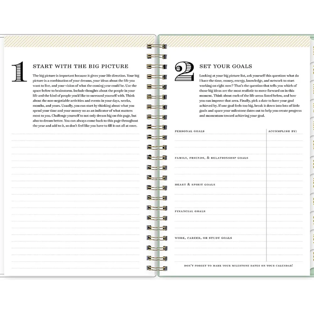 Day Designer for Blue Sky offers an elegant place to plan your year. With a customizable clear pocket cover, goal-setting worksheets, and outstanding weekly layouts, the 2025 Arcadia planner from Day Designer for Blue Sky helps you prioritize tasks and stay organized. It includes gold-tone foil stickers and a storage pocket for a well-designed year.