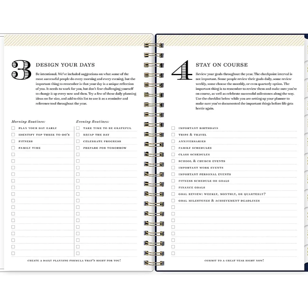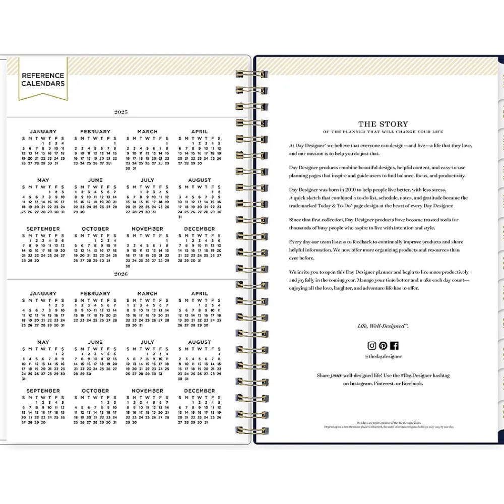 Day Designer for Blue Sky offers an elegant place to plan your year. Organize to-do lists, write notes, and use the four-step planning process to set goals in 2025 with this Meadow planner. Enjoy gold-tone foil stickers, high-quality white paper, and a durable storage folder that withstands daily use.