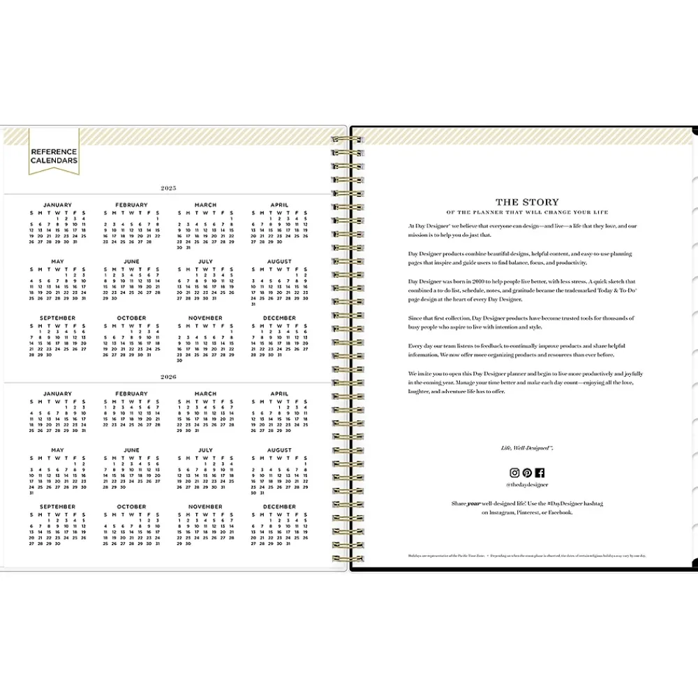 The Day Designer Swiss Dot weekly planner from Blue Sky offers an elegant way to plan your year. With a customizable clear pocket cover, goal-setting worksheets, and well-thought-out weekly spreads, this planner helps you prioritize tasks and stay organized. Includes gold-tone foil stickers and a storage pocket for a well-designed year.