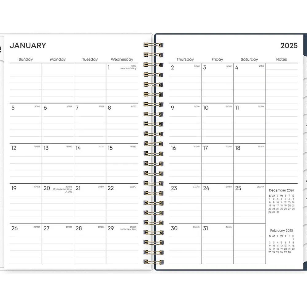 Organize tasks and time with the 2025 Dellania weekly and monthly planner from Blue Sky. It features ruled weekly layouts, tabbed monthly views, and notes pages to help you manage your schedule and achieve your goals.