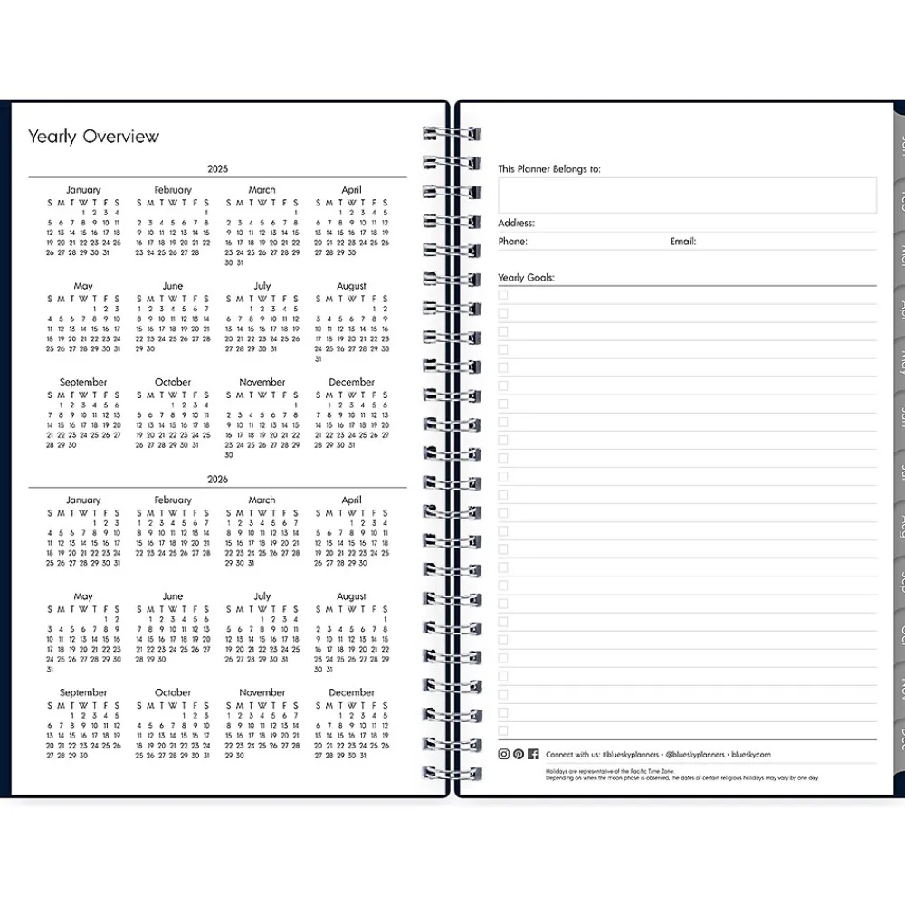 2025 Planners|Blue Sky 2025 Enterprise 5″ x 8″ Weekly & Monthly Planner, Plastic Cover, Navy (147973)