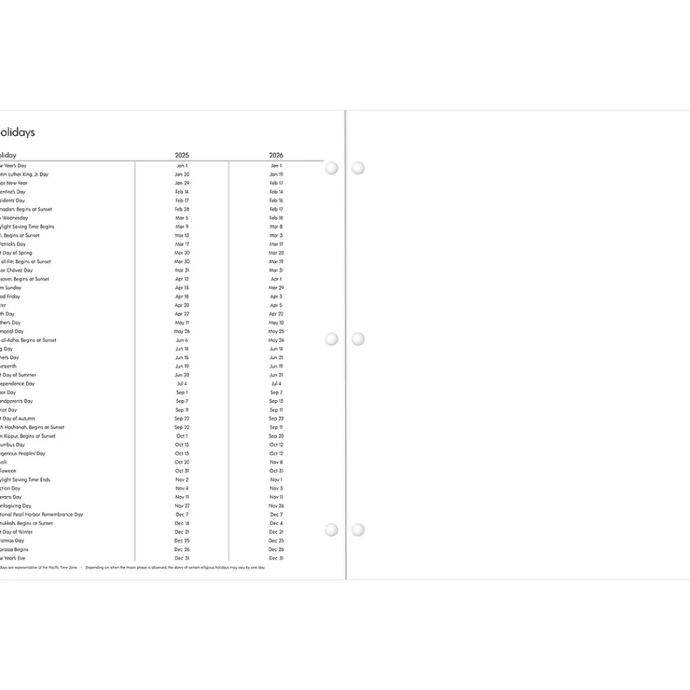 - Three-hole punched for use with most full-size binders