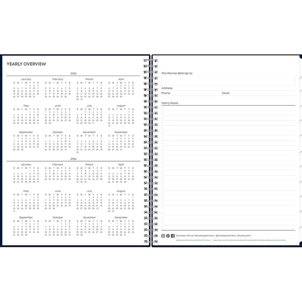 A simple planner for busy schedules. Organize tasks and time with the 2025 Harbour planner from Blue Sky that includes a storage pocket. Use ruled weekly layouts, tabbed monthly views, and notes pages to manage your schedule and achieve your goals.