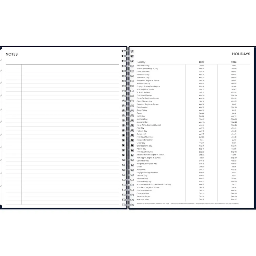 - Features two-page weekly and monthly spreads, with space for notes and quick reference calendars