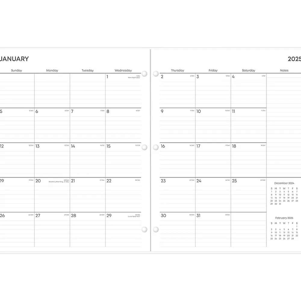Snap this 2025 Blue Sky Juno monthly planner into your binder or folder so you can access your appointments, tasks, and goals with ease. It has a light, flexible cover, a stapled spine, and comes three-hole punched for use with most full-size binders.