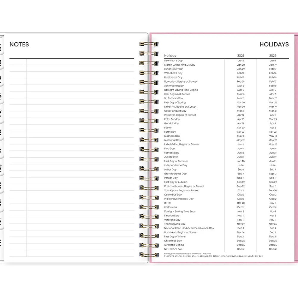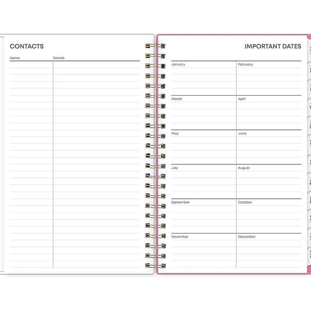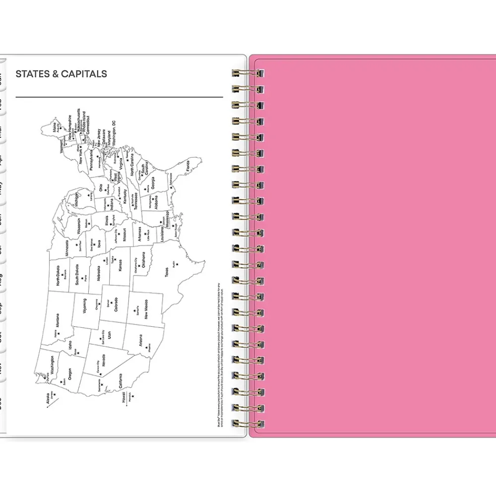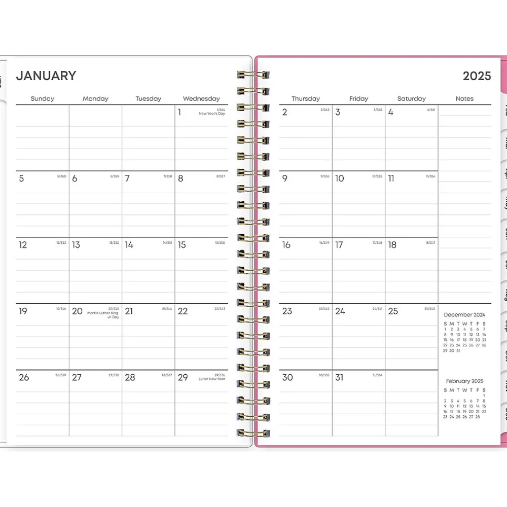 Organize tasks and time with a 2025 weekly and monthly planner from Blue Sky. The Juno Pink planner offers lined weekly layouts, tabbed monthly views, and notes pages to help you manage your schedule and achieve your goals.