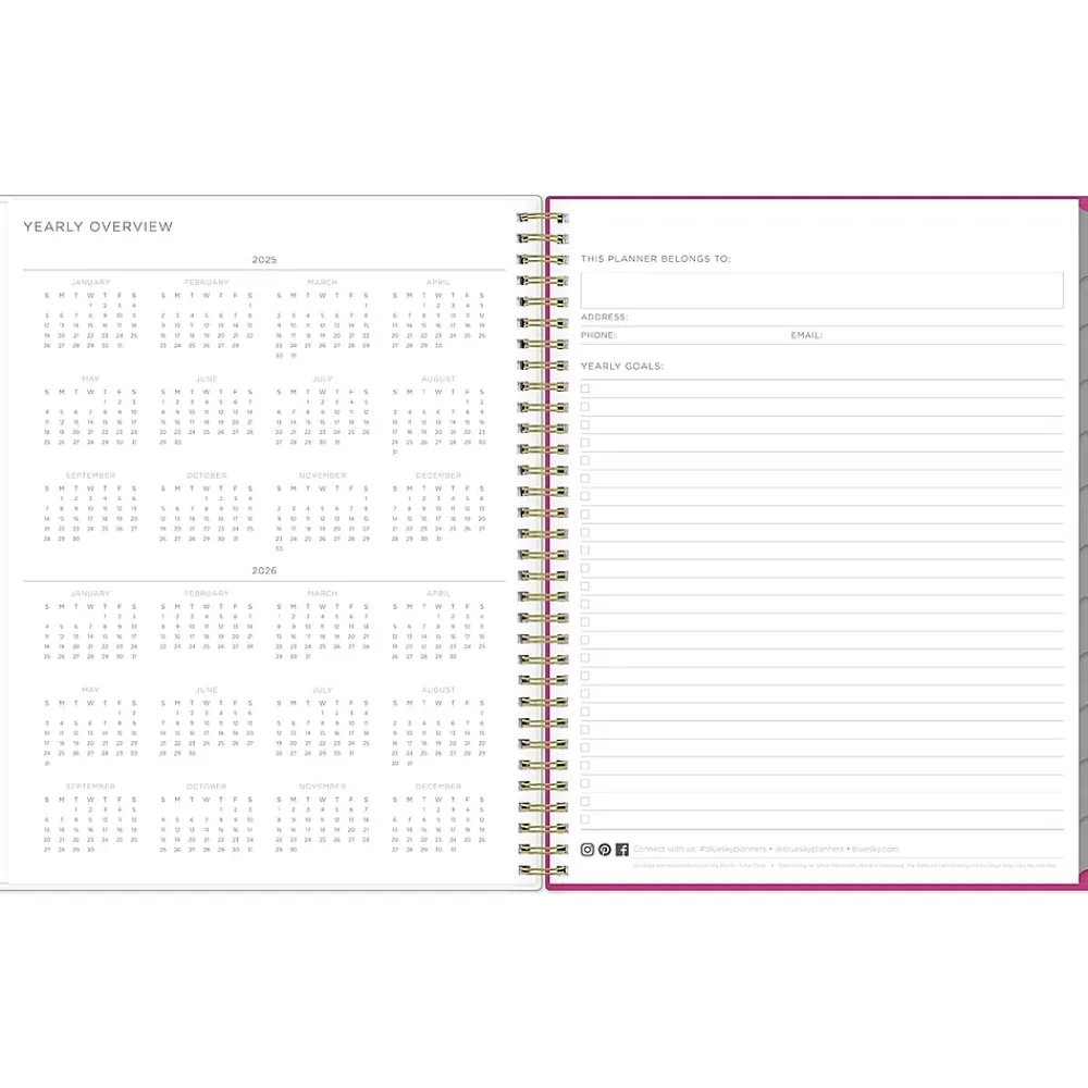 2025 Planners|Blue Sky 2025 Kelly Ventura Magenta Blooms 8.5" x 11" Weekly & Monthly Planner, Plastic Cover, Multicolor (140945-25)