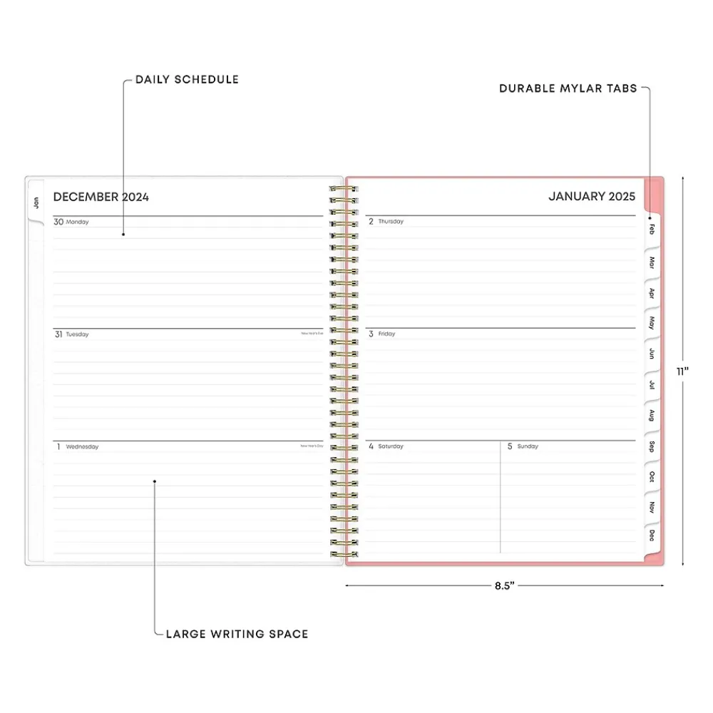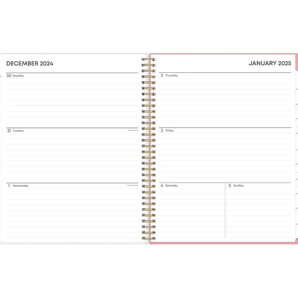 Organize your tasks and time with this Lanissa 2025 weekly and monthly planner from Blue Sky. Use the included storage pocket, ruled weekly layouts, tabbed monthly views, and notes pages to manage your schedule and achieve your goals.