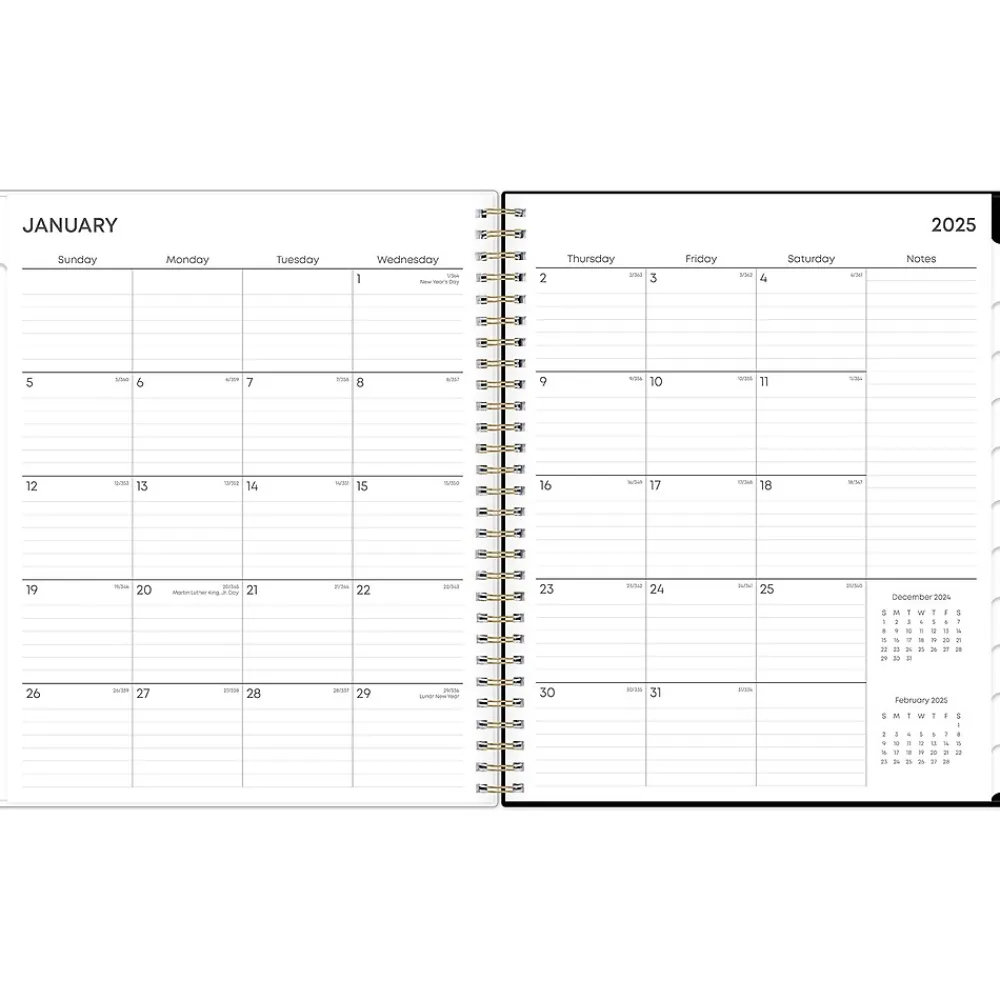 - Offers two-page monthly views with space for notes and quick reference calendars