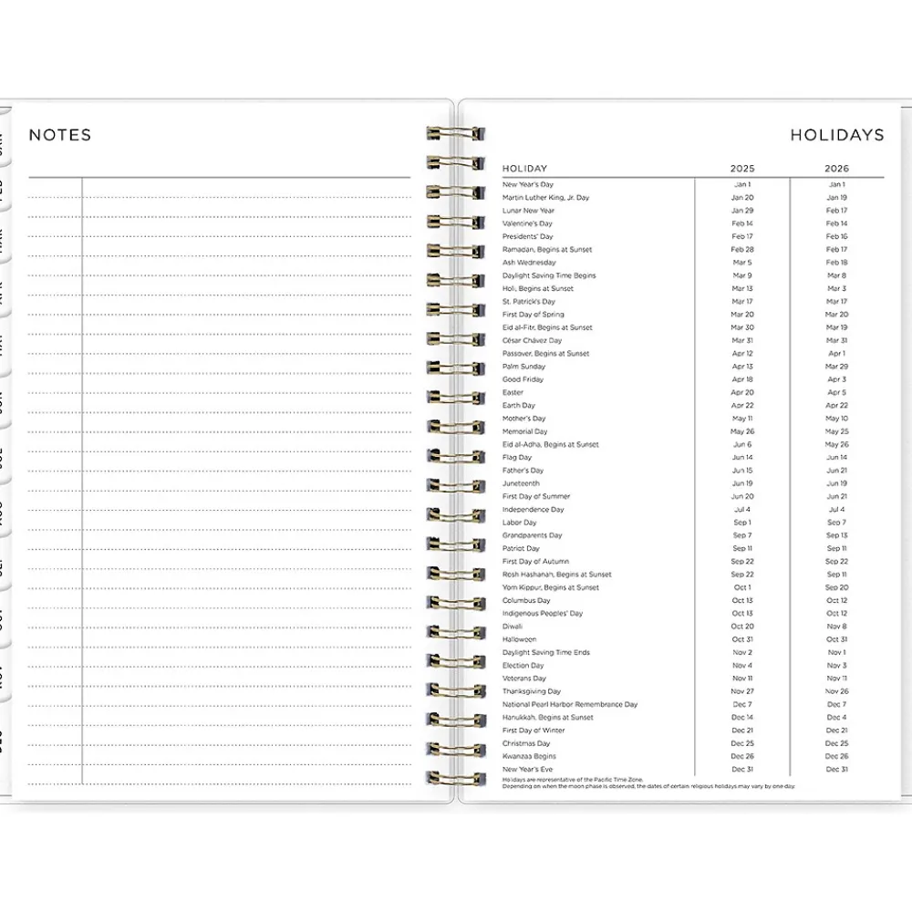 - Features two-page weekly and monthly spreads, with space for notes and quick reference calendars
