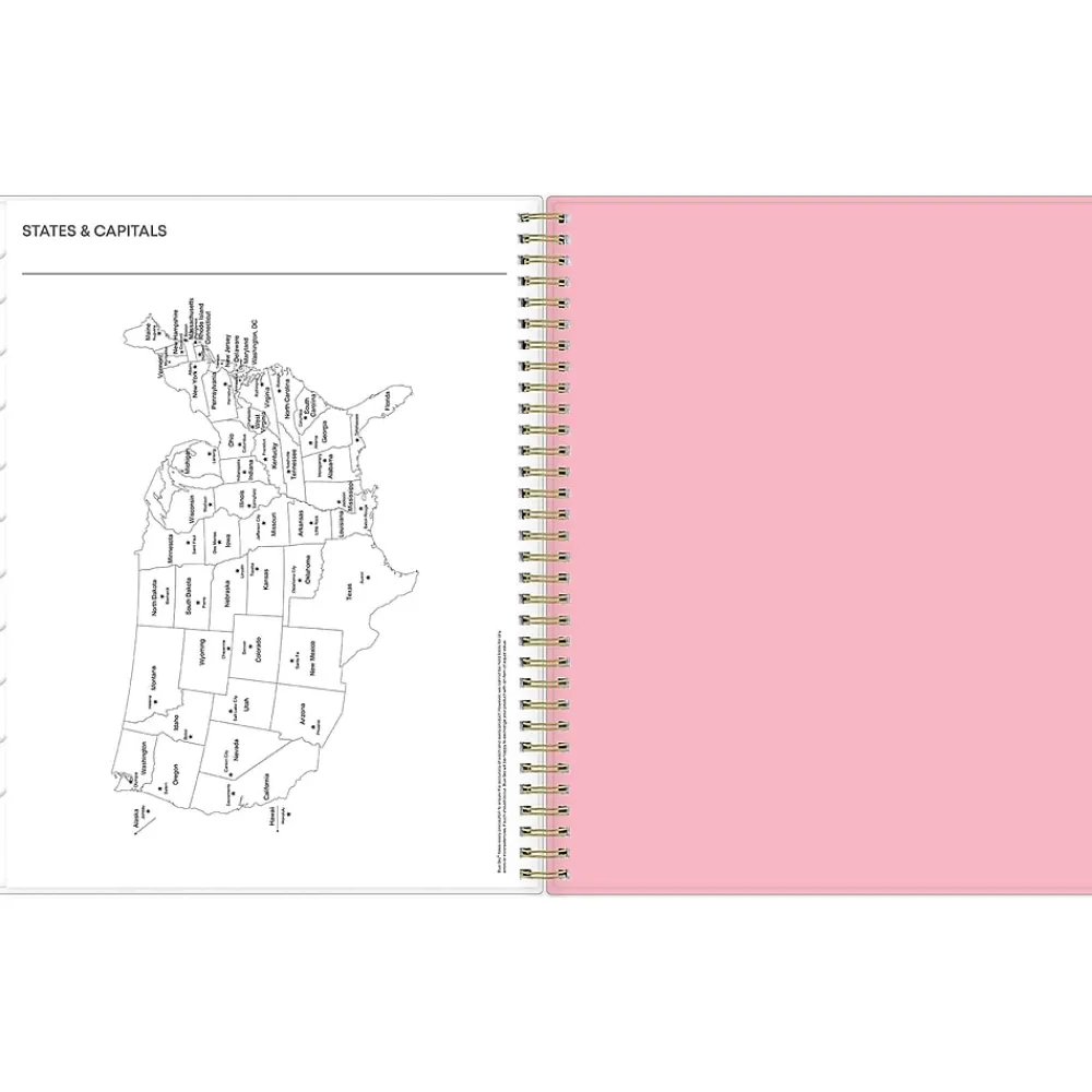 - Features one month per two pages and one week per two pages with space for notes and quick reference calendars