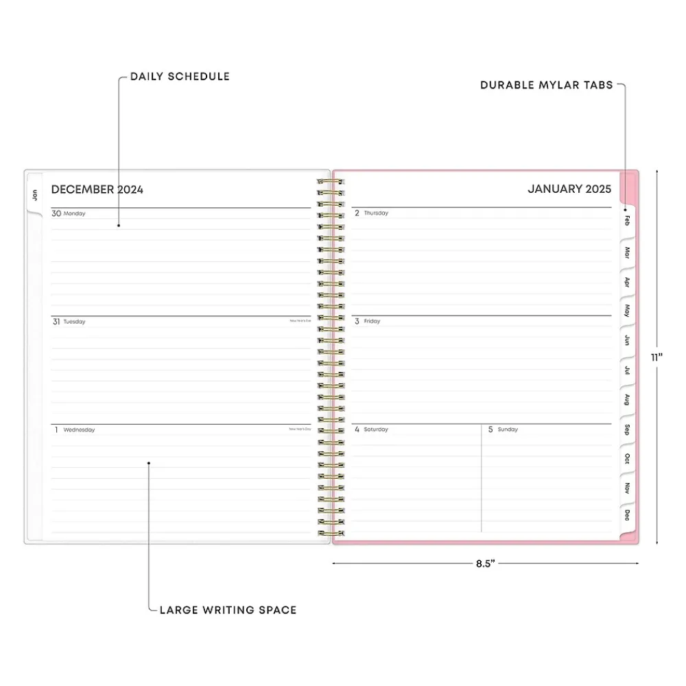 A simple planner for busy schedules. Organize tasks and time with the Mimi Pink weekly and monthly 2025 planner from Blue Sky that includes a storage pocket. Use weekly layouts, tabbed monthly views, and notes pages to effectively manage your schedule and achieve your goals.