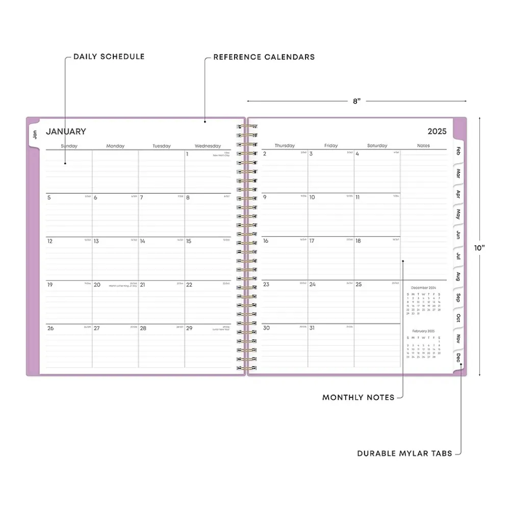 2025 Planners|Blue Sky 2025 Orchid 8" x 10" Monthly Planner, Plastic Cover, Purple (147941)