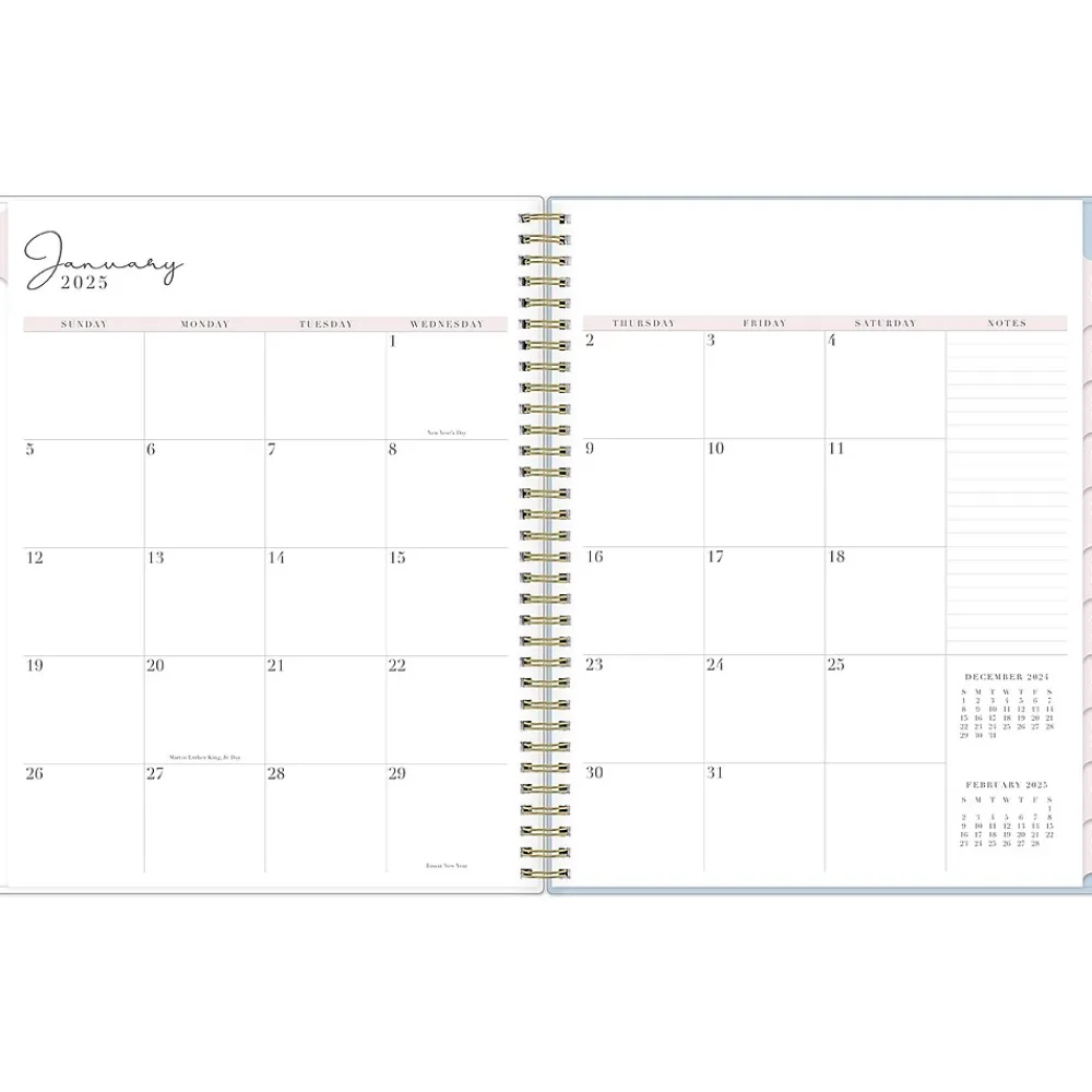 Organize your tasks with the 2025 Parcella planner from Rachel Parcell for Blue Sky. It includes stickers and a storage pocket and features unruled weekly layouts, tabbed monthly views, and notes pages to help you manage your schedule.