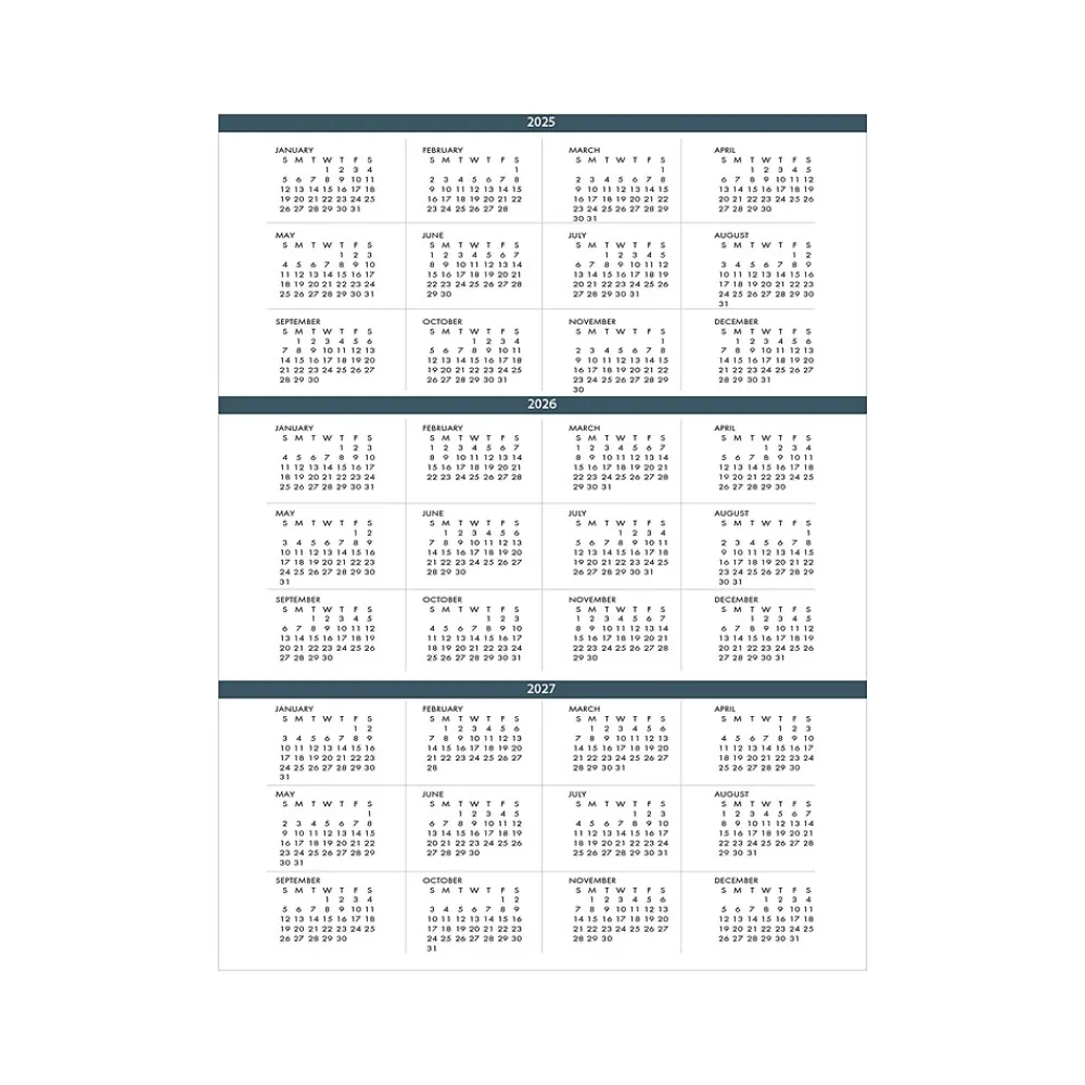 - Three-year calendar reference page for long-range planning