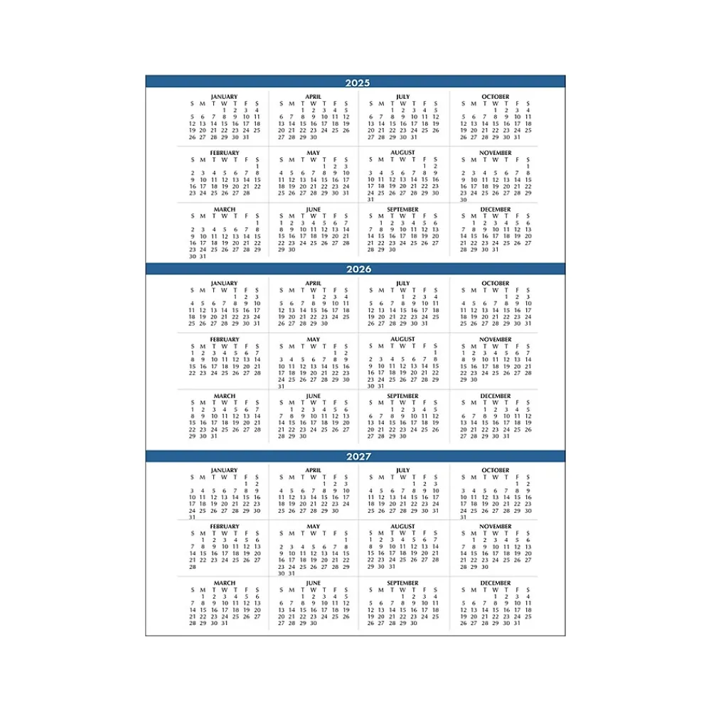 - Weekly and monthly planner covers a 12-month range from January 2025 to December 2025